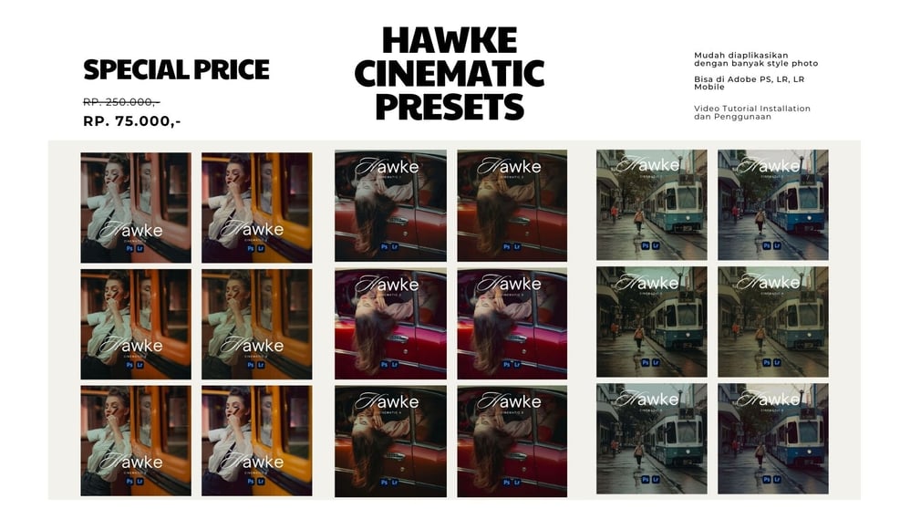 Dalam paket pembeliannya akan ada 6 Hawke Cinematic Preset